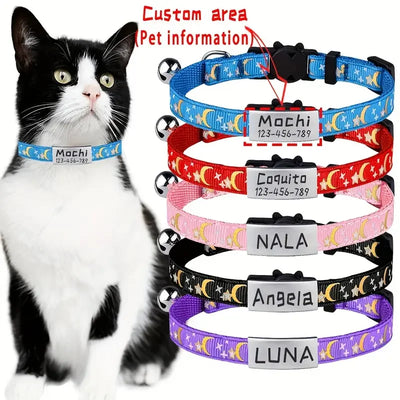 Gepersonaliseerde Kat Honde Halsband met Klokkie en Gegraveerde Naamplaatjie