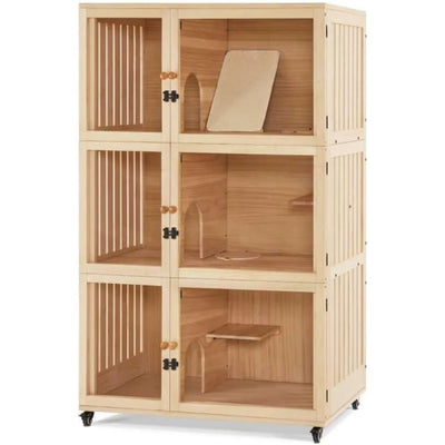 Large Wooden Cat House Villa Luxury Triple Condo with Wheels