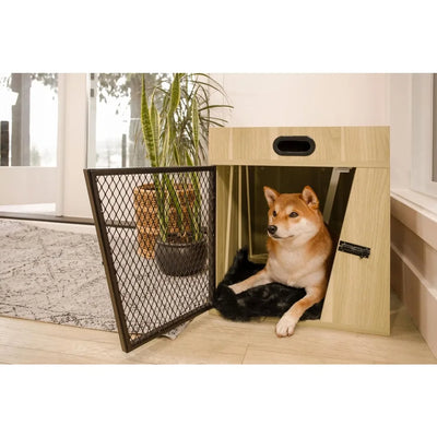 Geometric Wooden Pet Crate - Cozy Indoor Retreat