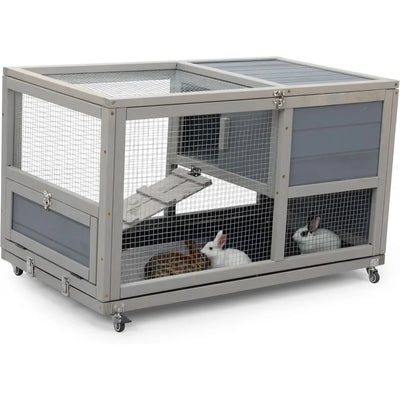 Hign-concerned Wood Rabbit Hutch On Wheels With Tray