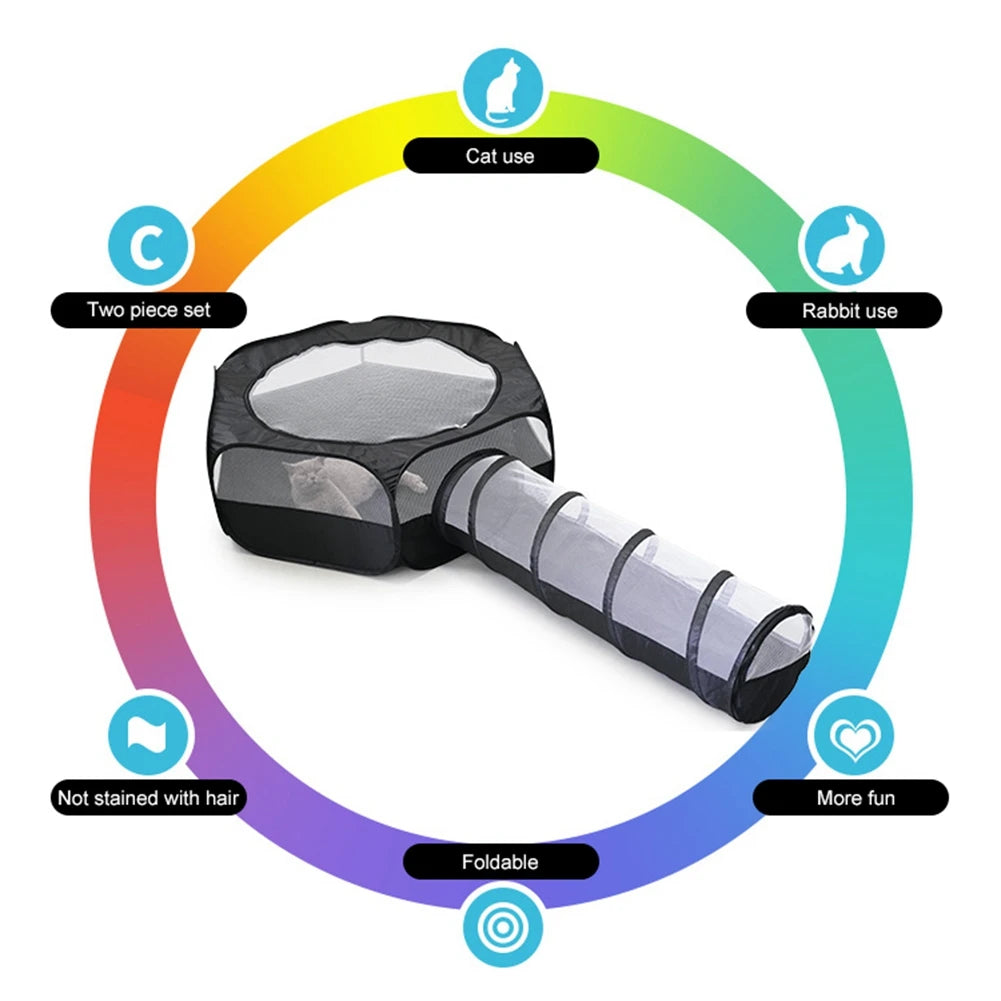 2 In 1 Foldable Cat Tunnel Rabbit Cage Multifunctional Pet Toy