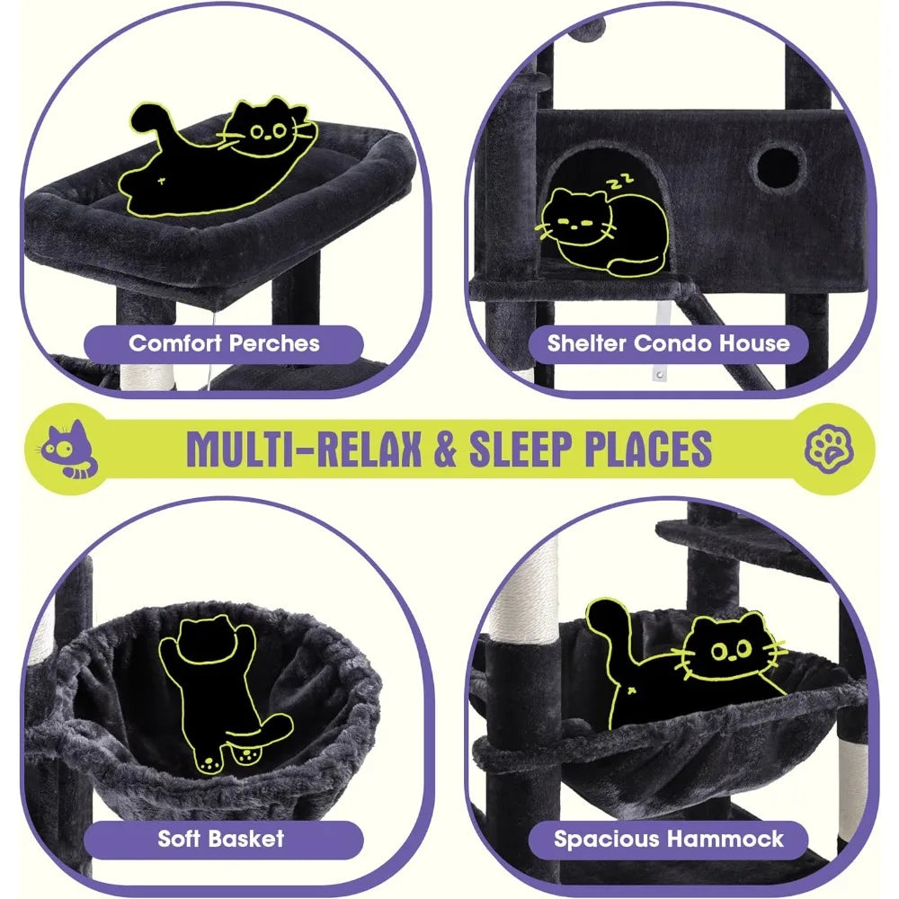 - Multi-level design — four or more levels with a towering 81 inches height for vertical exploration and active play, suitable for curious kittens through adult cats.