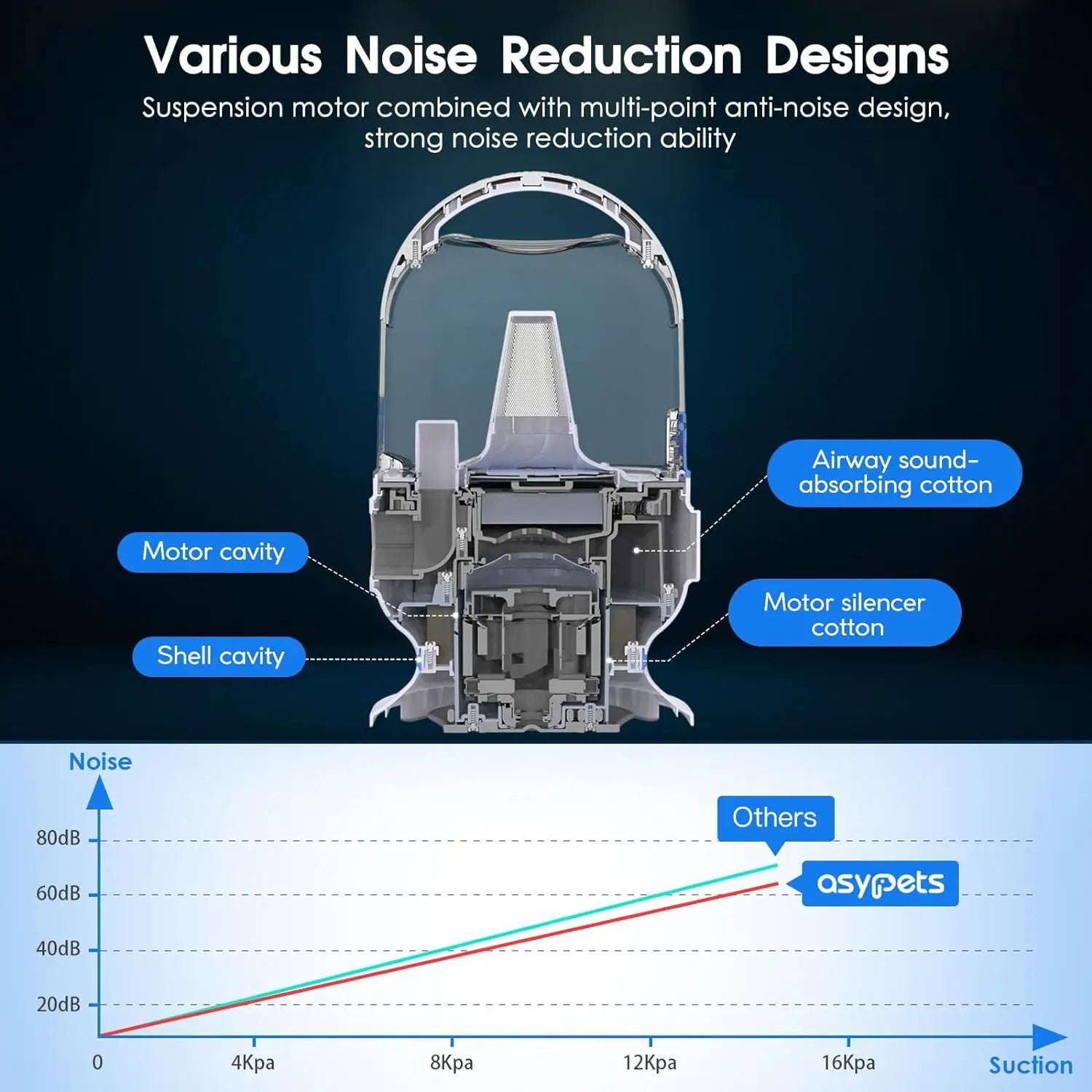 Featuring an impressive 16-level suction adjustment, this pet groomer boasts a powerful suction capacity of 13.4Kpa. With the ability to collect 99% of pet hair directly into a vacuum container, you can say goodbye to messy clean-ups!