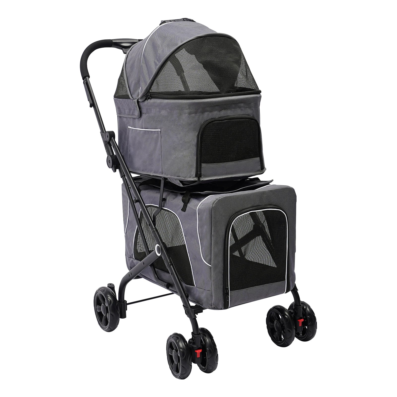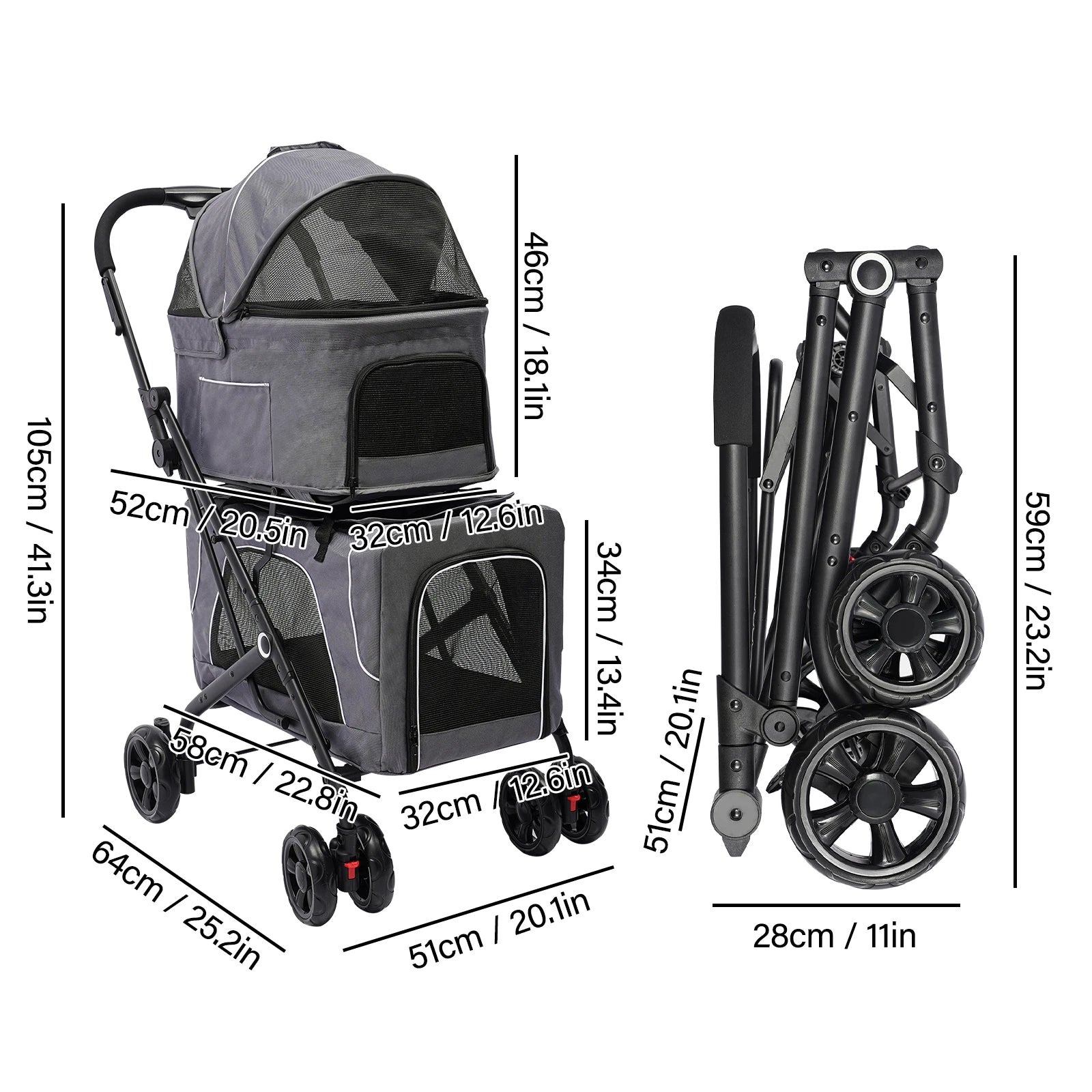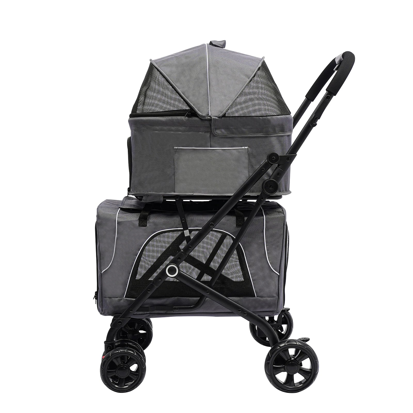 Breed Foldable Pet Stroller Travel With Storage Basket