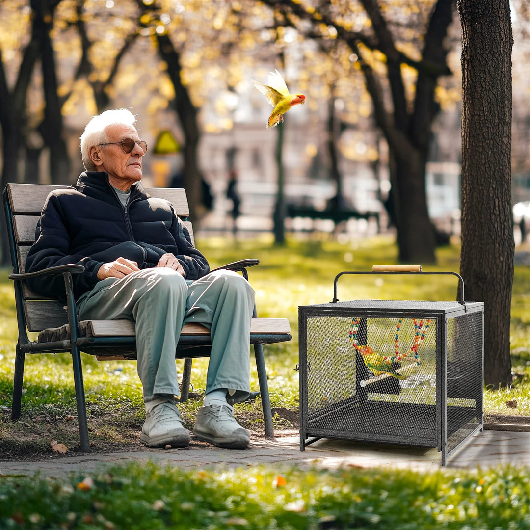 - Durable iron frame gives you a secure, long-lasting habitat for your bird on the go, with smooth welds and easy-access doors for daily care.