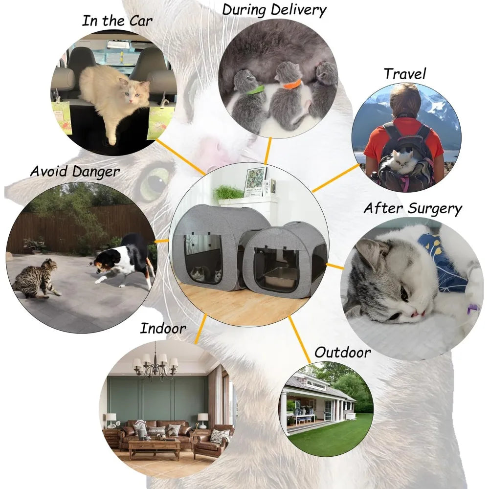 Meet the Hign-concerned Portable Cat Playpen Foldable Pet Tent — a secure, fold-and-go retreat that lets your curious cat explore, nap, and play safely wherever you are.