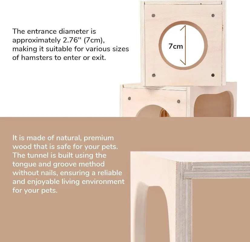Create a cozy, engaging retreat for your tiny companion with the Zhejiang Wooden Hideout House With Tunnel for Small Pets.