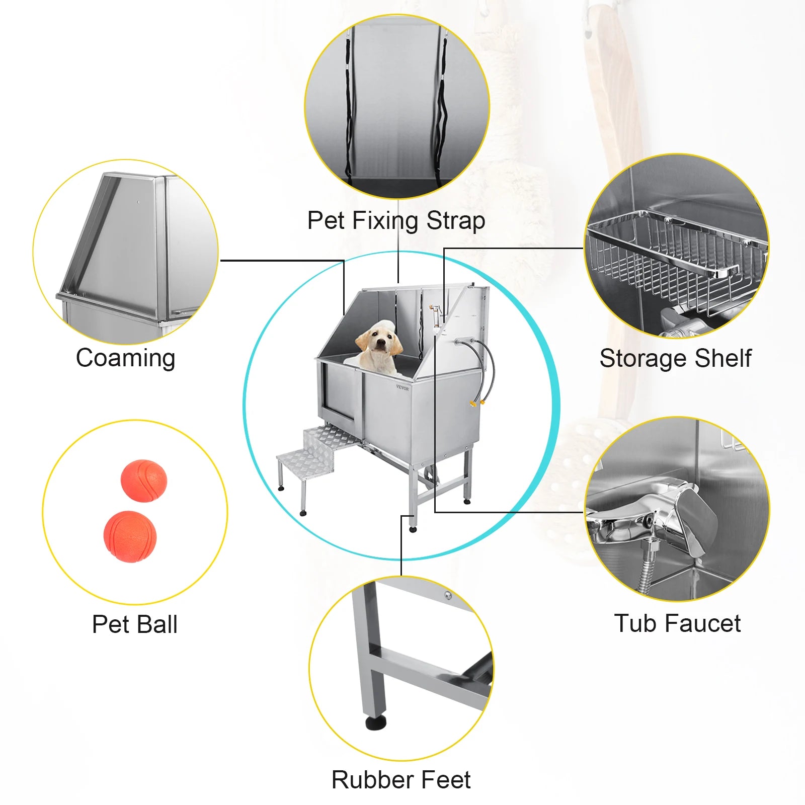 Elevate your grooming space with a rugged, stainless steel dog tub built for comfort and efficiency.