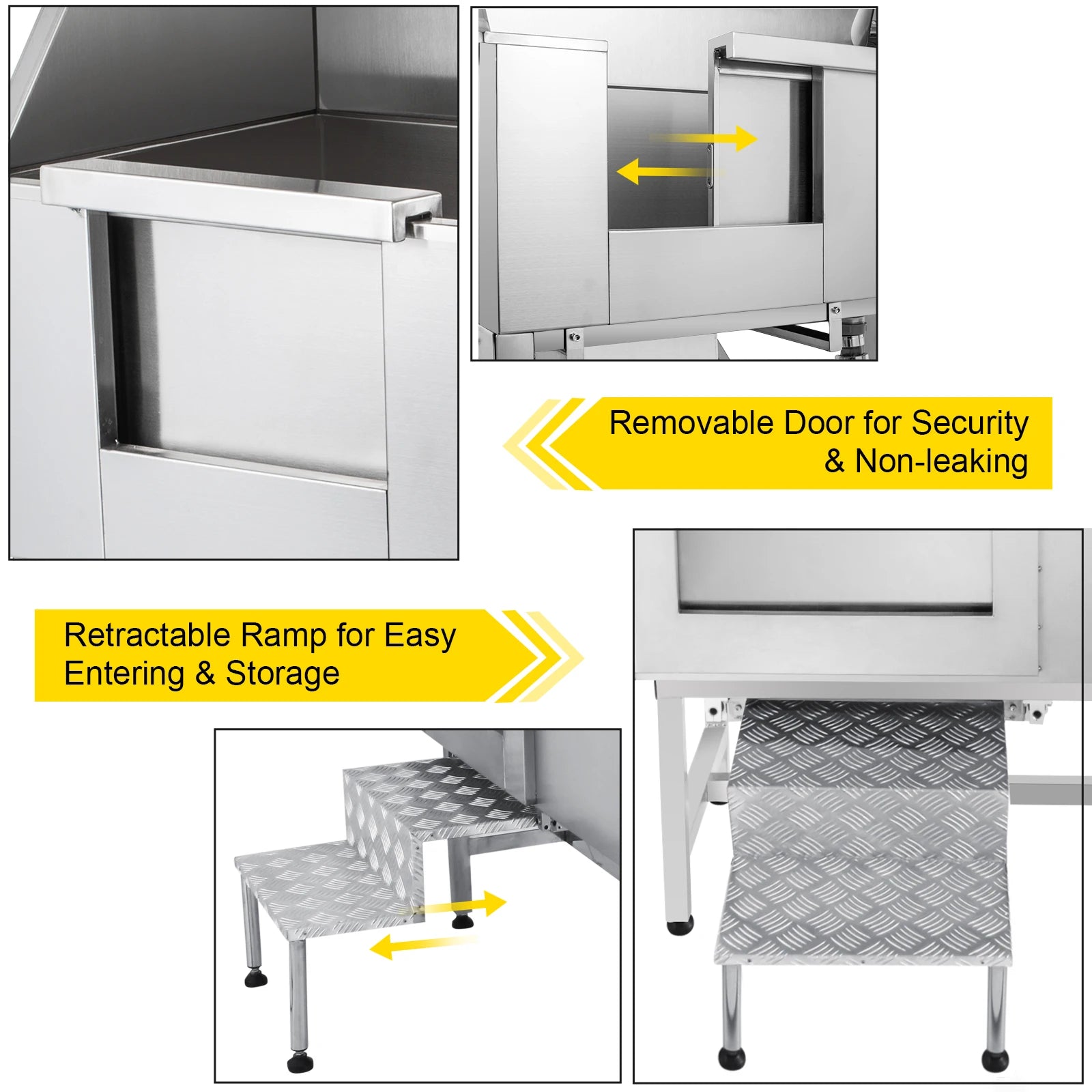- Adjustable floor grates and a built-in walk-in ramp ensure safe, stress-free access for every dog.
